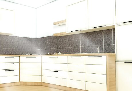 Measure your space. It is important to make sure you get a good measurement so you know exactly what size you should cut your tiles. Choose a stopping point, either directly below your cabinets or at an arbitrary point on the wall. Make sure that you have enough tiles to fill the measured space, as well as a few extras for precaution. Use a level and straight edge to mark your stopping point along the wall.