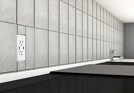 Finish attaching tiles. Work your way across the wall, until the entirety of your desired space is filled up. Cut any pieces to fit outlet holes or edges and corners before you attach them to the wall.