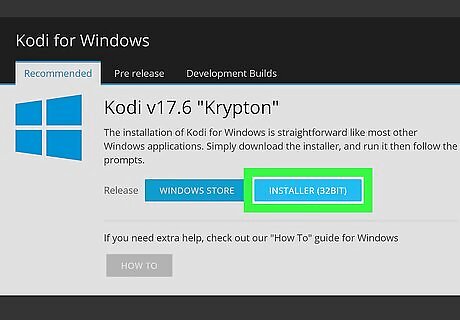 Go to http://kodi.tv/download/ in a web browser. This will bring you to the Kodi for Windows download page. When you install Kodi with this method, app updates will be installed automatically when your PC runs regularly-scheduled updates. If you'd prefer to update Kodi manually, use the Installing from the Installer method instead.