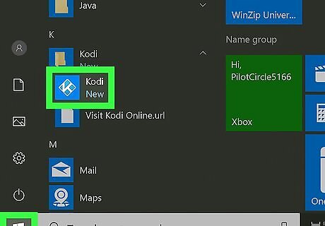 Open Kodi. You’ll find it in the Start menu in a folder called “Kodi.”