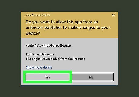 Double-click the Kodi installer. Once the file is downloaded, it’ll usually be in your Downloads folder (look for the file that contains the word “kodi” and ends with “.exe.”).