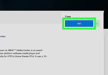 Click Get. It’s near the top-right corner of the Store. The “Downloading Kodi” bar in the Store window shows the progress of your download.