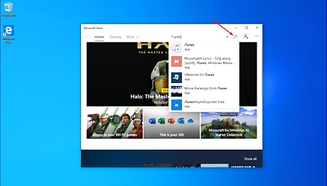 Use the Search option to find the iTunes app.