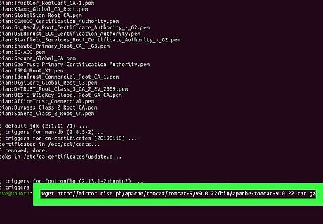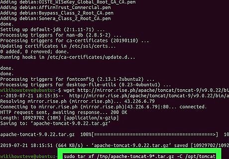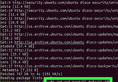 Run sudo apt-get install default-jdk in Terminal. This will install the latest version of the official Java Development Kit on your computer. Type or paste the command, and press ↵ Enter or ⏎ Return to run it. You'll need Java installed on your computer to install and set up Tomcat. If you already have Java installed, this will update it to the latest version. You can skip this step if you already have the latest Java version installed.