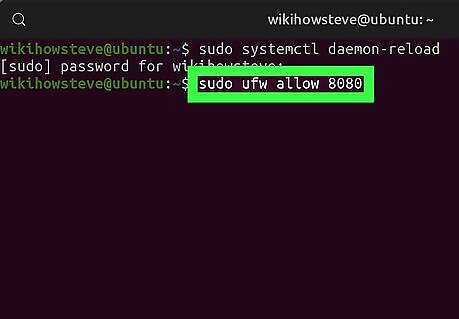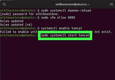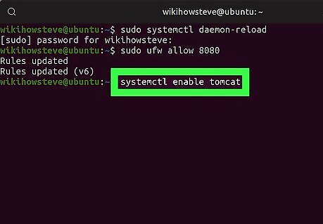 Run the sudo ufw allow 8080 command (optional). If your server is protected by a firewall, run this command in Terminal to allow traffic on port 8080. This will allow you to access the Tomcat interface from outside of your local network.