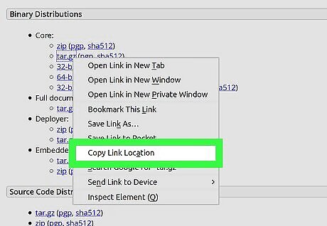 Right-click the blue tar.gz link under the "Core" heading. This will open your right-click options on a drop-down menu.
