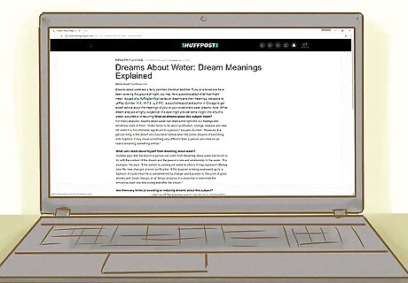 Keep a dream diary. If you want to interpret a dream, you need to keep a dream diary. Dreams fade from memory fast. Recording your dreams each morning can help you remember important details. Keep a notebook and pen by your bedside table so you have quick access to your dream diary first thing in the morning. People tend to forget details of their dreams quickly after waking up. Record as many details as possible. Do not just focus on the water but other aspects of the dream surrounding it. What happened in the dream? Who were you with? What the location like? How long did the dream go on for?
