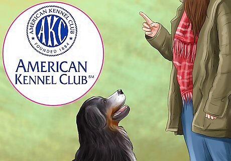 Sign up for dog obedience classes. You should sign up for dog obedience classes well in advance of your due date, so that your dog is well trained and prepared for the new family member. At the obedience classes you could ask other people about their experiences of introducing dogs to new family members. You could ask your local pet store if they know about good obedience classes in your neighborhood. You could check if there is an American Kennel Club that offers obedience training in your area.