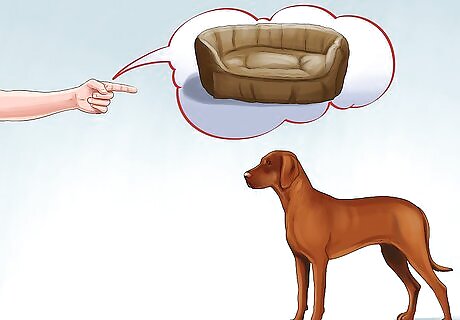 Train them to go to their bed or crate on command. You will need to get your dog to go to a particular place when your baby comes along. Teach them by pointing at their bed and saying, "Go to your bed," or "Go to your Crate." This will be a useful command when you are introducing your dog to the new family member. Learn how to train your dog to go somewhere on command.