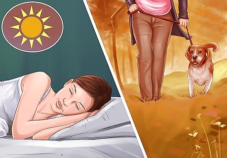 Get your dog used to new routines. Since your household will have new routines when the baby comes, you should get your dog used to the changes ahead of time. If you anticipate having to walk your dog for shorter periods or at different times of the day, for instance, you should start this new walking routine prior to the baby’s arrival. If you anticipate being really tired in the mid-afternoon after your baby’s arrival, you could start taking naps at that time so that your dog is used to the new routine. If you anticipate eating dinner a little earlier every evening, you could start with the new dinner time so that your dog gets used to the new routine.