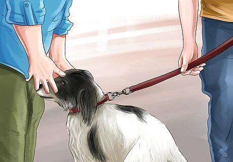 Make the dog feel free when the introductions are made. When the new person arrives, you should give your dog a sense of freedom to smell the person, as long as the individual is comfortable with the situation. You should make sure the doors are open and there are plenty of exits, so that your dog does not feel trapped. For instance, do the introductions in an open area of the house and leave all of the doors open.