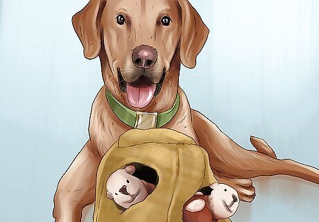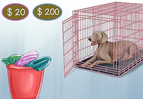 Maintain a private space for your dog. Designate an area of the house as your dog’s area, so that they have a place to retreat if things get too intense or loud with the new baby or other person in the house. You could give them the laundry room or another small room as a retreat space. A dog crate could also be used. Dog crates range from $20 to $200. You could also purchase a new bed for your dog. Choose the room where your dog gets fed and where all its toys are kept.