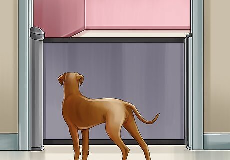 Install a baby gate in front of the baby’s room. Install a baby gate, or a screen door, in front of the baby’s room. Your dog will be able to see and hear what is going on, but will be unable to go in. By installing the gate ahead of time, your dog will get used to the new boundary. When shopping for a baby gate, remember to measure the doorway where the gate will be installed. You should also know the height of your dog, since you want to purchase a gate that your dog will be unable to jump over. You should avoid pressure mounted gates, since your dog will be able to push them over. Instead, get a hardware mounted baby gate. Hardware mounted gates are much more difficult for dogs to get around.