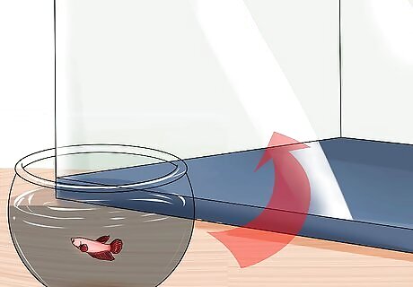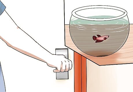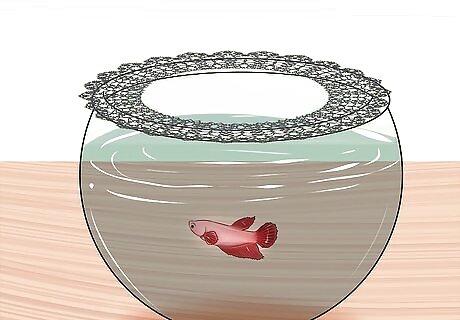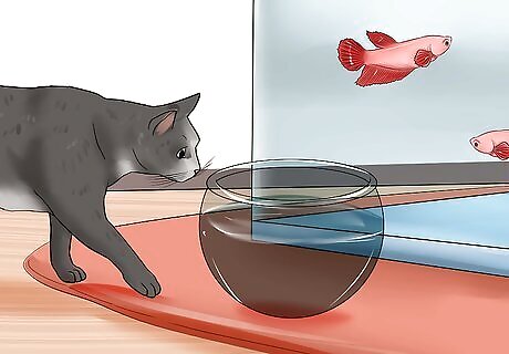 Move the fish. One sure-fire way to keep your cats out of the water of a fish bowl is to move the fish to a room where the cats don’t go. If you like looking at your fish, designate a room you frequent as a no-cat zone. You could start blocking off a bathroom. If you like the fish more as a decoration, you could lock it in an unused bedroom. Just be sure to go in this room everyday to feed the fish.