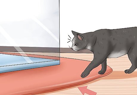 Instigate environmental punishments. Also called “remote punishment” or “booby trapping,” placing things in a cat’s environment it doesn’t like keeps it from repeating a behavior. For example, any textured surface cats don’t like can be placed around the fish, such as sticky paper, aluminum foil, or a plastic carpet runner with the nubby side turned up. You can also place smells offensive to cats near the fish bowl. Cats hate the smell of eucalyptus, citronella, and wintergreen.