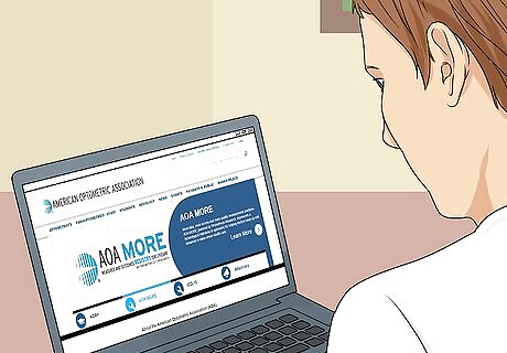 Find an eye doctor. If you need a new eye doctor, contact your insurance company for a list of covered providers in your area. Alternately, ask your general practitioner for a recommendation. You can also ask your family, friends, or coworkers if they recommend their eye care provider. Finally, you can visit the website of a professional organization of eye doctors such as the American Academy of Ophthalmology (http://www.aao.org/) or the American Optometric Association (http://www.aoa.org/?sso=y).