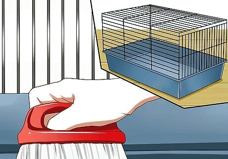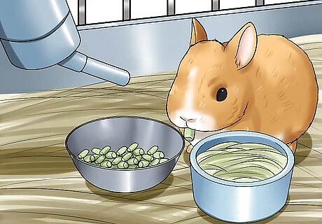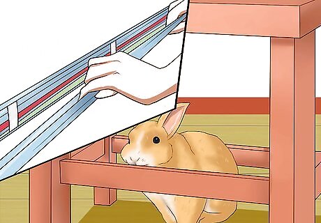Be ready to feed and clean every day. Taking care of a rabbit isn't just about providing a safe and engaging environment for him. It is also about ensuring you can commit enough time to looking after him. You will have to feed him every day, and refresh his supply of fresh hay and water whenever necessary. You will also have to spot clean his enclosure every day, and give it a more thorough clean once a week. If you are unable to keep his environment clean, he may become ill. It might be smelly work, but it's an essential part of taking care of a bunny.