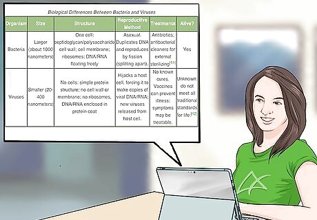 Determine whether the organism meets the criteria for life. Though there is no precise, formal definition of what constitutes life, scientists agree that bacteria are undoubtedly alive. On the other hand, viruses are a bit more like zombies: they're not dead, but they're definitely non-living. For example, viruses have some characteristics of life, like having genetic material, evolving over time through natural selection, and being able to reproduce by creating multiple copies of themselves. However, viruses don't have a cellular structure or their own metabolism; they need a host cell to reproduce. In other respects, viruses are basically non-living. Consider the following: When they have not invaded another organism's cell, viruses are essentially dormant in every way. No biological processes occur within them. They can’t metabolize nutrients, produce or excrete wastes, or move around on their own. In other words, they are very similar to inanimate material. They can stay in this "non-living" state for long periods of time. When the virus comes in contact with a cell that it can invade, it latches on and an enzyme dissolves part of the cell membrane so that it can inject its genetic material into the cell. At this point, as it hijacks the cell to make copies of itself, it starts to show one important characteristic of life: the ability to move its genetic material into future generations, producing more organisms that are like itself.