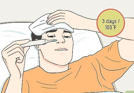Check if you’ve had a fever for over 3 days or if it’s above 103 °F (39 °C). Fevers are usually signs that your body is already fighting an illness, such as the flu or bacterial infection. If you aren’t feeling well, take your temperature with a thermometer and check the reading. If you have a fever that’s already over 103 °F (39 °C), go to the doctor’s as soon as possible to determine the cause. If you have a fever between 100–102 °F (38–39 °C), monitor your temperature for another 2 days, and visit your doctor if it persists. Contact your doctor if you also have a rash along with your fever. If you have a severe headache paired with a fever, visit the emergency room since it could potentially indicate a more serious condition. Pay close attention to fevers if you’re unable to keep down liquids or stay hydrated because it signifies something more severe.