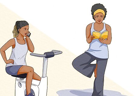 Make exercise fun. Sometimes, physical activity can be a little monotonous or boring. Spice up your workouts by making them more fun. Listen to audiobooks while you workout. Download audiobooks or podcasts to your phone. Get into a good plot or story as you sweat. If you can, try reading the newspaper, a good book or magazine while you work out. If you're able, catch up with a friend or family member while you exercise.