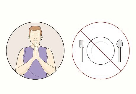 Try fasting. You may have heard that fasting is good for you physically. Many people believe that it allows your body to “detox” and somehow expel harmful toxins. While the evidence for this is spotty, fasting is practiced in yoga and other spiritual traditions to help develop willpower and focus the mind. Trying it might help you to reach a higher level in your journey. The idea behind spiritual fasting is not just to skip a few meals, but to overcome your bad habits and thoughts and control yourself in mind and body. Some practitioners think that fasting for short periods helps you to build willpower as well as sensitivity and intuition. Keep in mind that spiritual fasting should be undertaken with the guidance of a spiritual master. Fasting for physical wellbeing should be done with medical advice. You should NOT attempt long fasts.