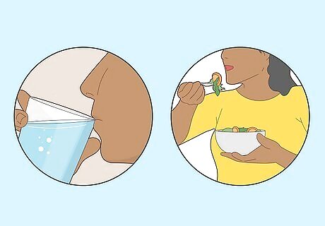 Eat and drink well. Doing yoga regularly, you will find that your body needs certain fluids and nutrition to function as best it can. Clean up your diet, drink plenty of fluids, and learn how to eat to maximize your comfort while exercising. Water keeps you hydrated, which you will definitely need after an intense session. You should try to drink water in the time leading up to each class, but also in the hours afterwards. Aim for around 64 oz. of water per day. Time your meals. It’s usually not a good idea to do yoga on a full stomach. Allow at least one hour after eating for light meals; for heavier food, give yourself three to four hours. Consider going meat-free. There are practical and spiritual reasons to become a yogi vegetarian. First the practical: meat can take 4 or more hours to digest, so many people at least reduce their intake to avoid discomfort. Spiritually, some yogis follow the concept of ahimsa. This is an ethical doctrine that says it is wrong to harm a living being, which certain people extend to eating meat.