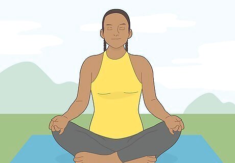 Focus on meditation. One thing that you can do to connect to yoga’s spiritual side is to meditate. Meditation is a mix of concentration and breathing that, if done right, can help you to reach a different state of consciousness, where the mind is alert, relaxed, and directed inward. As part of yoga, meditation can reduce stress, lessen pain, and help you manage anxiety. But meditation can also open your mind. Try to find a quiet spot and sit comfortably, with your spine erect. Close your eyes and take deep breaths. Focus on your breathing, in and out, and let your attention rest on the rhythm. It is OK if your mind wanders, but always bring it back to your breathing. Don’t expect to “get” anything out of meditation or to feel better or worse. The point is precisely the opposite – to free you from worldly anxieties and concerns. Also, don’t worry that you are doing it wrong – there is no “wrong way” to meditate!