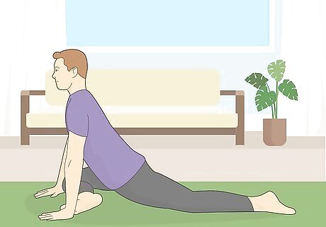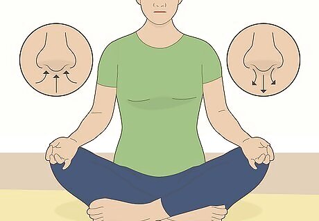 Learn how to breathe. You’ll need to learn how to breathe properly for yoga exercises, as well, especially when holding poses. The basic maneuver is a “three-part breath” called Dirga Pranayama. It involves breathing in and out of the nose into your belly and should be calming and relaxing. Dirga Pranayama is a continuous breath. Start by inhaling through the nose into your lower belly, then into your lower and upper chest. Your exhalation should start in the throat before moving down into your chest and abdomen. If it helps, try resting your hand on each “station” as you breathe. Or, try isolating the movements while you learn. The breath should eventually feel like one continuous wave moving up and down your body.