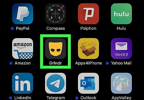 Open Grindr. This app icon looks like a yellow/orange mask. You can find this app on your Home screen, in the app drawer, or by searching.