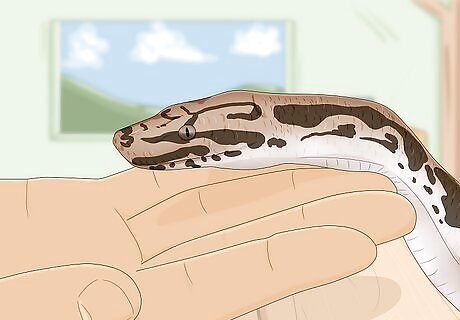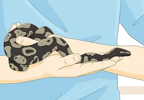 Establish trust by interacting regularly. Reticulated pythons are quite intelligent, and can be taught to trust and respect you once they establish that you are not a threat. The key to establishing this trust is consistent and routine interaction, which allows the python to know you are not a threat. Regular feeding and interaction helps the snake learn to recognize you. This will help make your python easier to work with, and lessen the chance of injury or confrontation.