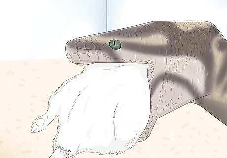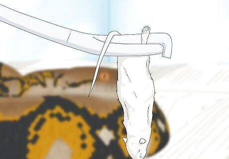 Use a tool to help encourage feeding. If you are changing your python’s diet, or want to keep a distance when providing food, you can use tongs. When using them, be sure to move the prey in small, slow movements near the python’s head to get its attention. Do not force the feeder into their face, or bump them on the head with it.