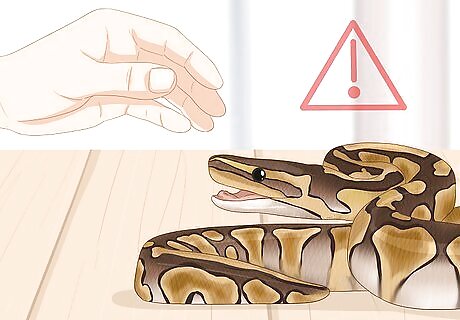 Take extra precautions during breeding season. Elevated hormone levels during the season can make pythons, especially males, moody and difficult to handle. You may notice male pythons with a reduced appetite, attempting to wrestle with you, or pacing more often around the cage. These are signs that he wants to breed, and he will be a bit high-strung for a while. Be careful when handling multiple males during the season. The next snake you interact with may smell the previous male, and react by trying to push you out thinking it is him.