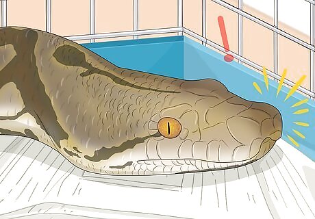 Watch your snake for pushing. This is a common behavioral problem among reticulated pythons, and one that can lead to further health problems if you don’t watch it. Your snake will regularly push its face against the cage or other object, causing it to swell. In worse cases, it can cause damage to the head, or lead to mouth rot or an abscess. Snakes push because they are uncomfortable, so check out the temperature or humidity in your cage, make sure its hiding spot is secure, or check for other health problems.
