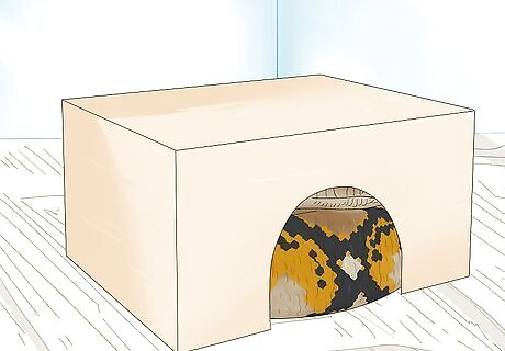 Create a hiding spot. Pythons aren’t very active, but will want some place they can hide away. It should be cozy and dark, and have an entrance large enough for your snake to enter and exit easily. A small box that the snake can curl up in comfortably should be enough