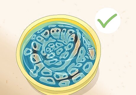 Provide a water dish. Your snake will need water, so there should be clean drinking water always available. Put it in a large, easy-to-clean dish, one that can’t be tipped over easily. While your snake may enjoy sitting and soaking in the water, the dish does not need to be big enough for that. Replace the water and clean the dish as necessary.