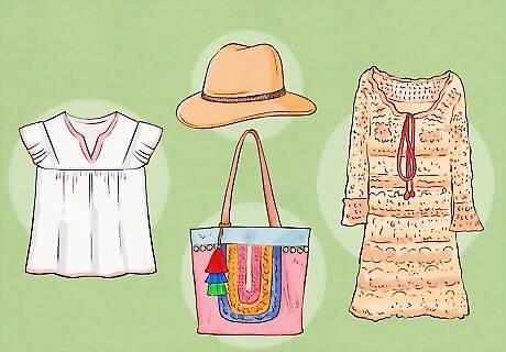 Say yes to lace, crochet and other embellishments. Crocheted and lace dresses, tops, hats, and bags are staples of Boho Chic. Beads, fringe, and embroidery are also hugely popular, and can appear in your clothing and your accessories.