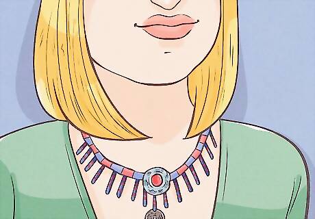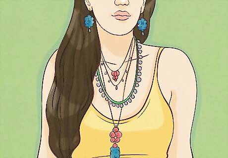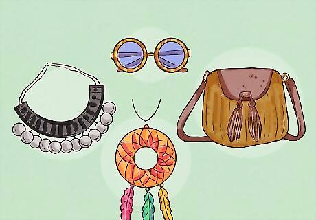 Wear a necklace. Boho Chic necklaces range in lengths, but what they're composed of is generally the same: natural materials and colors. Leather, metals, stones, shells, fringe, cottons and wools are common materials. (These are also common materials for earrings and bracelets.) Ethnic-inspired pieces are particularly popular.