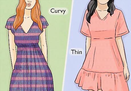 Dress for your body type. If you're curvier, look for items with more structure, as flowy items and layers can make you look bigger than you are. If you're thin and short, you may get lost in long, flowy layers; aim for shorter tops and/or skirts, slimmer fits, and shoes with heels.