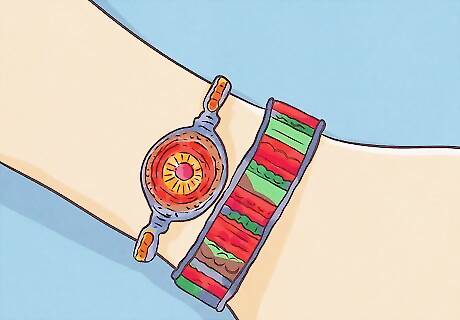Wear bracelets. Bracelets are a must-have for the Boho Chic style. Thin silver bangles and colorful, woven Mexican bracelets are amongst the most popular types. For a creative twist, you could also wear wooden bangles. You can wear bracelets on your ankles (i.e. anklets) too! Thin, dangly silver ones are nice. You can also wear bracelets (also known as armbands) on your upper arms: braided and metal armbands are popular.