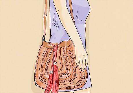 Get a colorful handbag. Colorfully patterned handbags as well as handbags with fringe and tassels are popular Boho Chic choices. As with everything Boho Chic, aim for natural fabrics and shades.