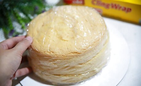 Store a cake that is frosted but not sliced. Plastic wrap is not needed to store a frosted cake as the frosting is almost as a shield for the cake; it protects it from any air that floats like dust, pet hair, fuzz, and bacteria. Also, plastic wrap would mess up the frosting and mix with the other frosting colors. Store your cake in a cake-keeper or flip a large bowl and cover it with that. It can last for about 4-5 days. If your frosting includes heavy cream (whipped cream topping) or a fruit filling like strawberry it must stay in the fridge in order to stay off from bacteria.