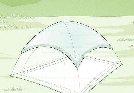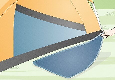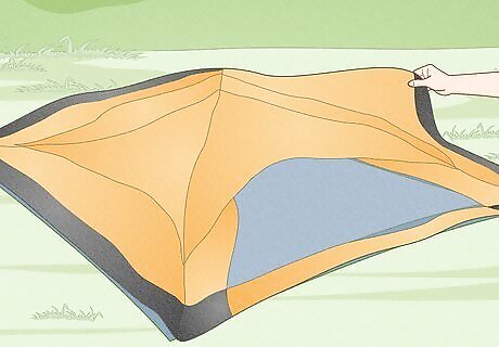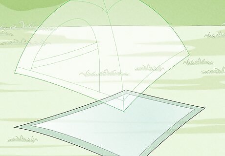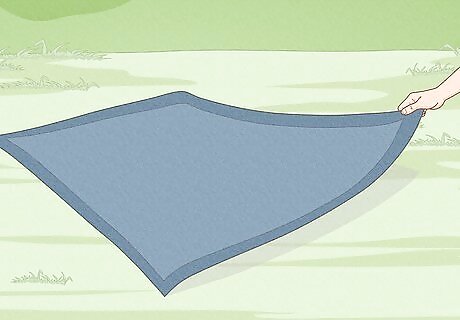 Lay out the moisture barrier or tarpaulin sheet. Spread the moisture barrier or tarpaulin sheet in an area slightly smaller than the footprint of your tent.
