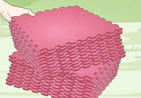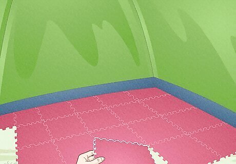 Install the interlocking foam tiles inside your tent in the room that you will use for your sleeping bags. Usually, each square covers 11 or 12 square inches. Therefore, an assembled set of 8 should be almost 2 feet (0.6 m) by 4 feet (1.2 m). If your room is 8 feet (2.4 m) across, you will need to assemble about four sets.
