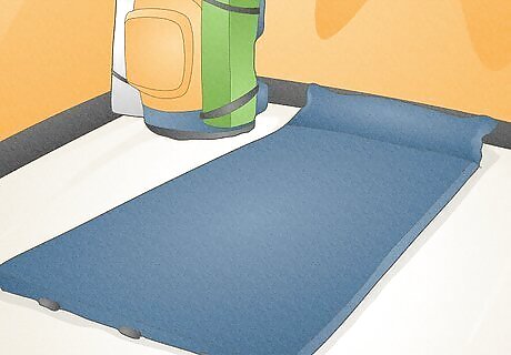 Bring self-inflating or inflatable mattresses with you. If you have space in the car, also throw in the gym mats or outdoor lounge chair mats, for added padding over the top of the inflatable mattress. If it's comfort you're after, there's no such thing as too much padding.