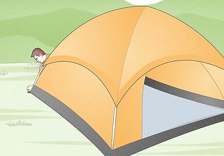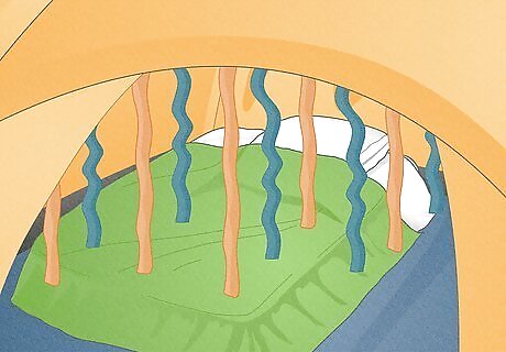 Choose a quality site for pitching the tent. Whether at a campsite or back country, the ground upon which you set up your tent affects the comfort levels dramatically. Look for a site that is level, free of jutting objects such as rocks, branches or tree roots and isn't too near water (wind blowing across water increases the chill factor inside the tent).