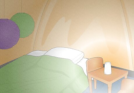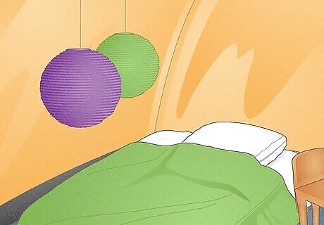 Hang up lanterns. These can be fun, party lanterns, or normal camping ones.