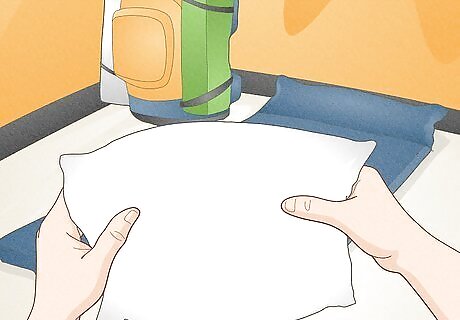 Purchase a small down-filled pillow that squashes right down. This can help you rest more easily at night and it neither weighs too much, nor takes up a lot of space. Various brands make these tiny camping pillows––look for a drawstring with a stopper that helps you to compress the pillow's size as much as possible.