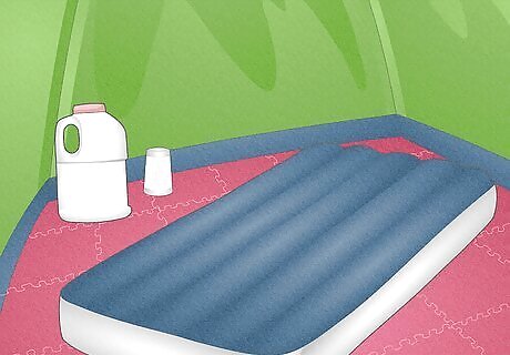 Pack a set of interlocking play mat foam tiles. Pack enough tiles to fit the inside dimensions of your tent. You will likely need 4 packs of foam tiles. Do a test run at home to see how many foam tiles are needed for your tent.