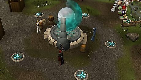 Next, if you're a member, you'll want to create a citadel. Go over to the portal in the west part of the clan camp, and ask your four friends to each stand on one of the 5 special tiles located around the portal. You will need to stand on one of the tiles, too. A citadel will automatically be created.