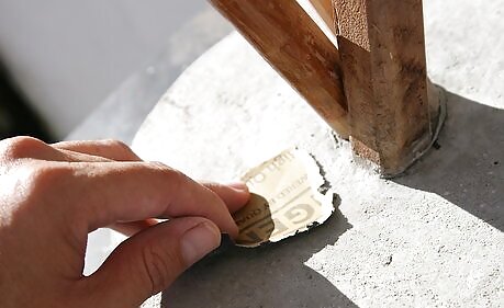 Sand around the concrete base of the stool with the sandpaper. This will smooth and shape the seat.
